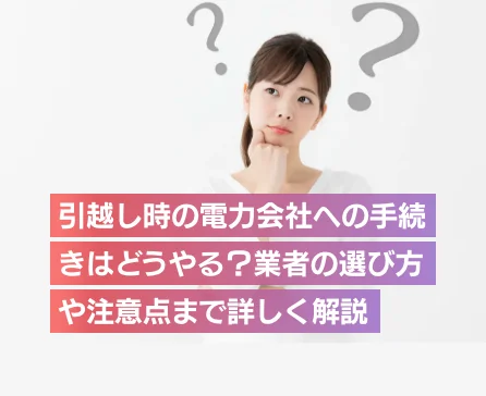 電力会社の選び方がよくわからない、引越しの手続きが面倒・時間がないという方は、「電気・電力会社の乗り換え窓口」をご利用ください。電気やガス・水道などの手続きが1回の連絡で済み、面倒な電力会社の比較も代行できるので安心です。